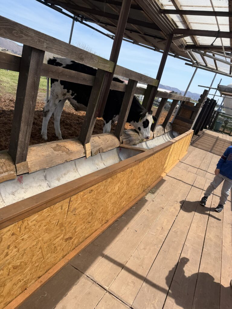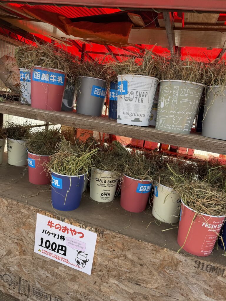 ここでは、なんと若い牛にエサやり体験が100円で出来ます😃