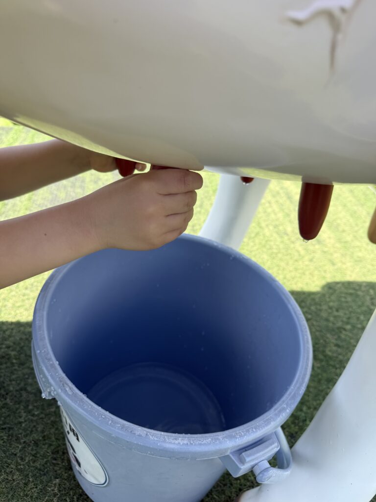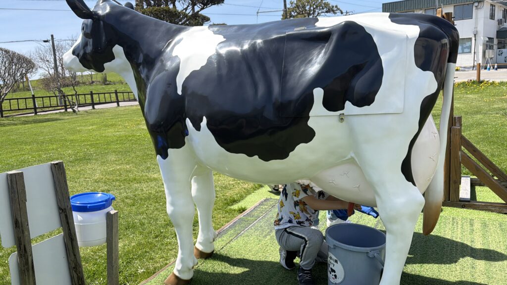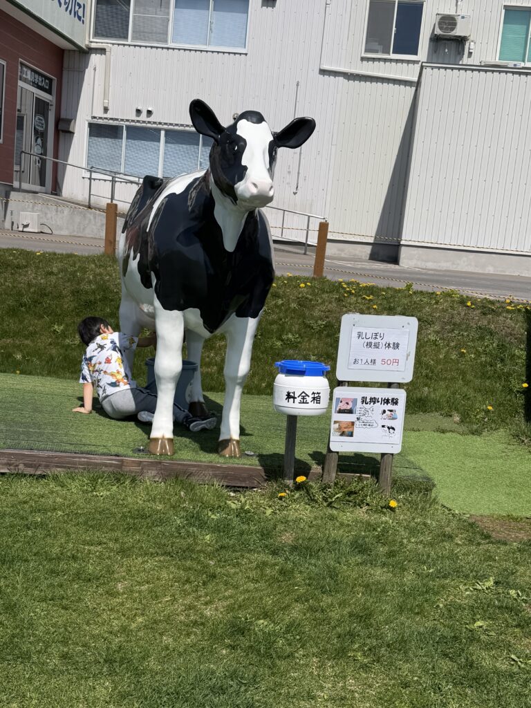 なんと、乳搾り体験(模擬)も出来ます!1回50円ですが^^;