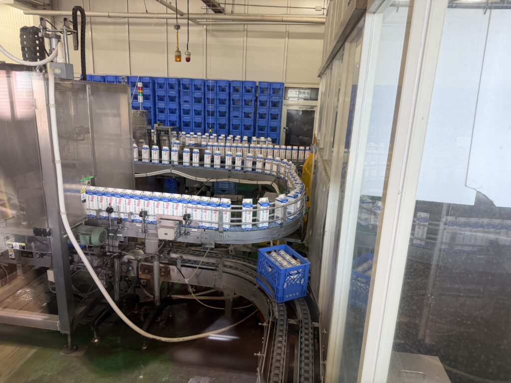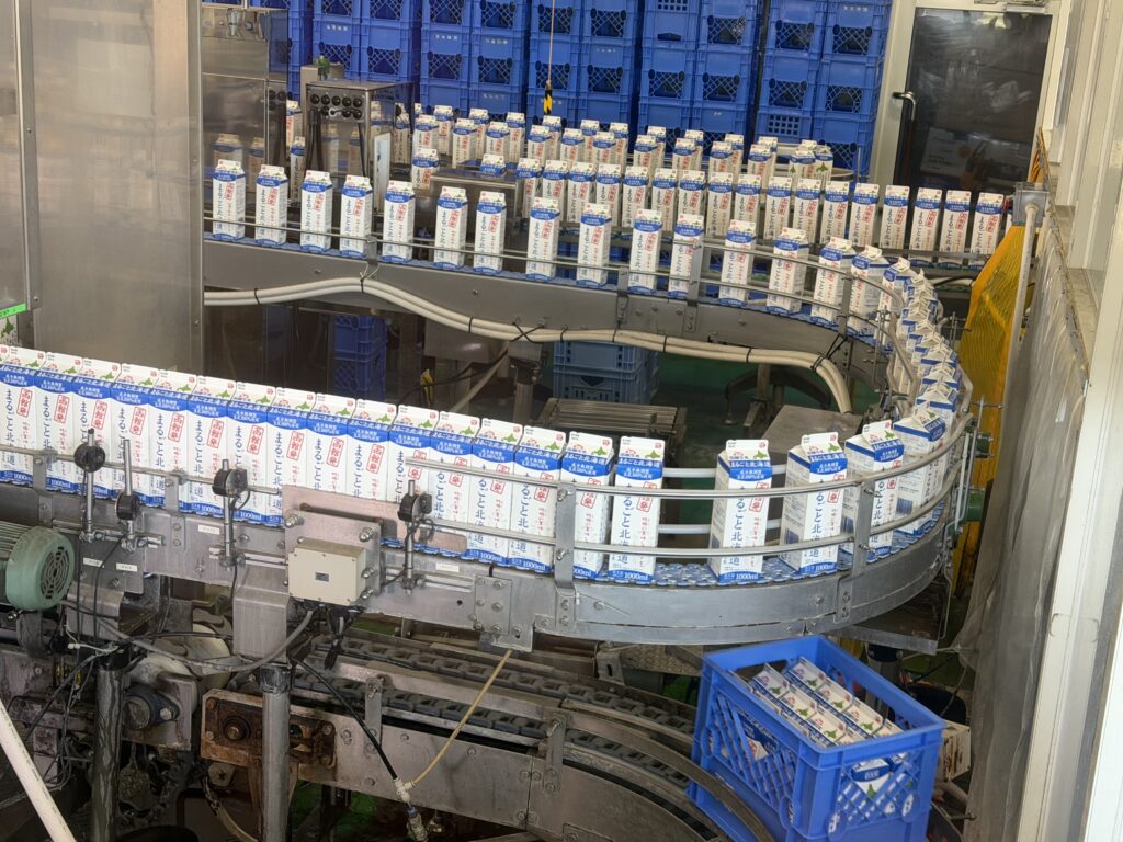ガラス越しに、函館牛乳がパックされたり箱ごとに納められる様子を見ることができます。