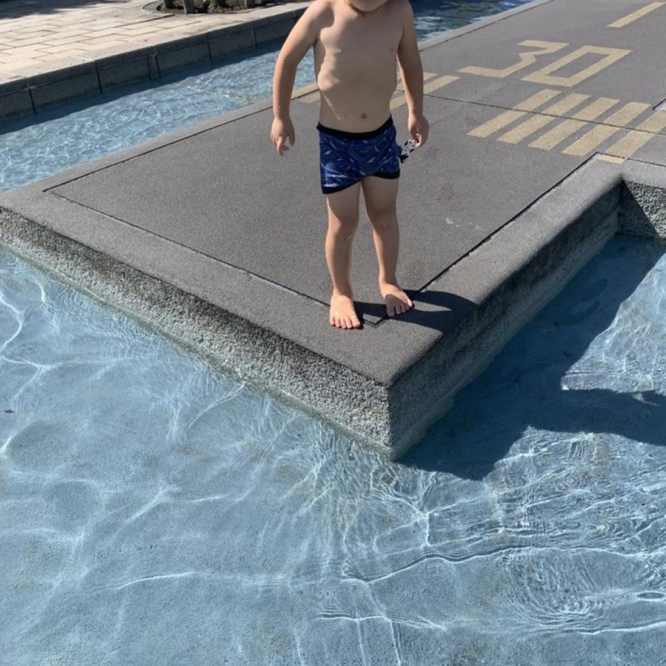 飛行機型の下には、滑走路型の遊び場があります。水がなくても歩くことができるので、オススメですよ!大人が見ても、可愛い!となる造りです( ´ ▽ ` )
