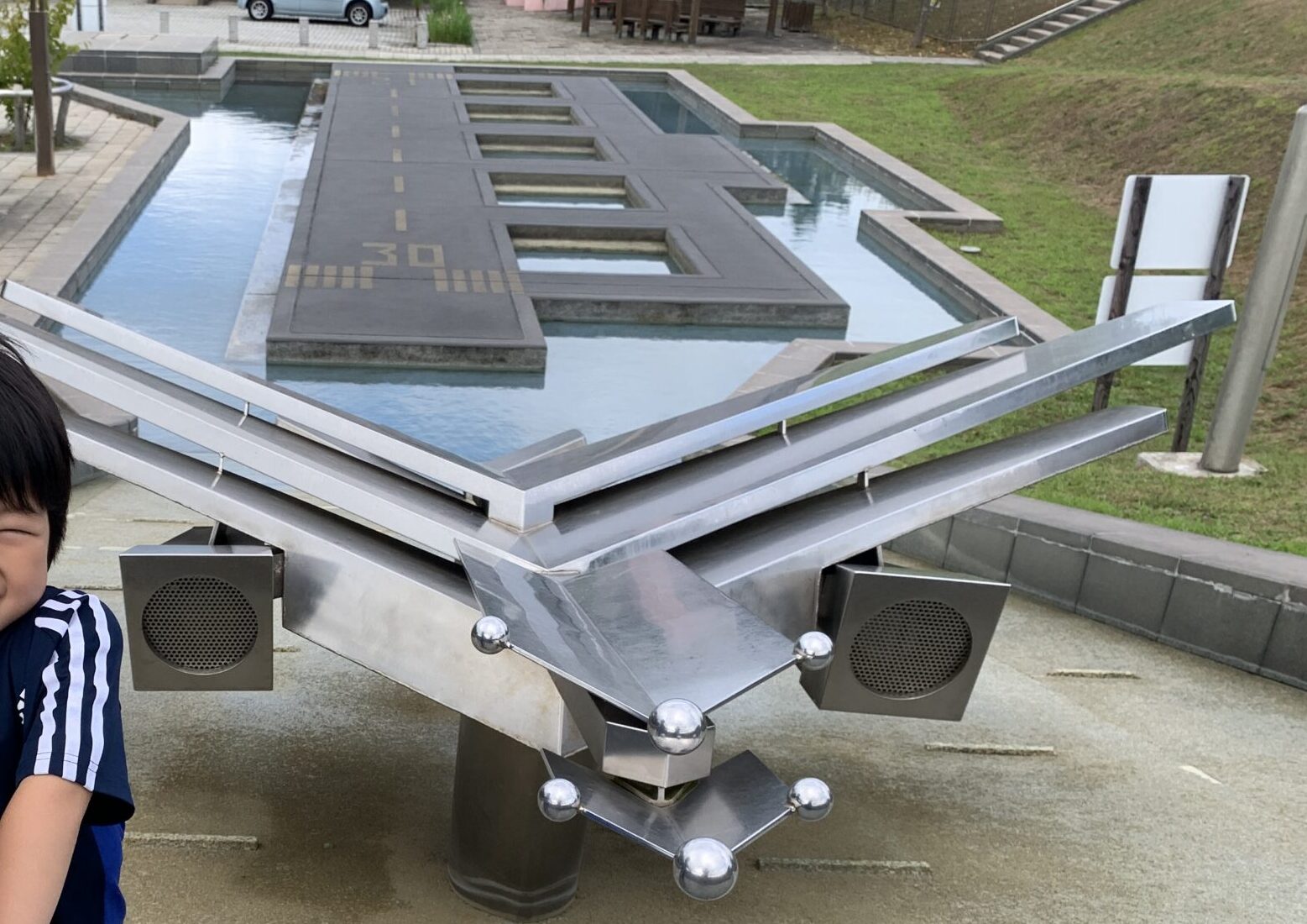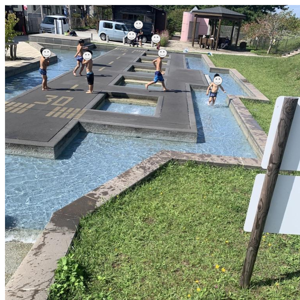 滑走路型の水遊び場!(水が出ていない春や秋にも歩いて遊べる!)