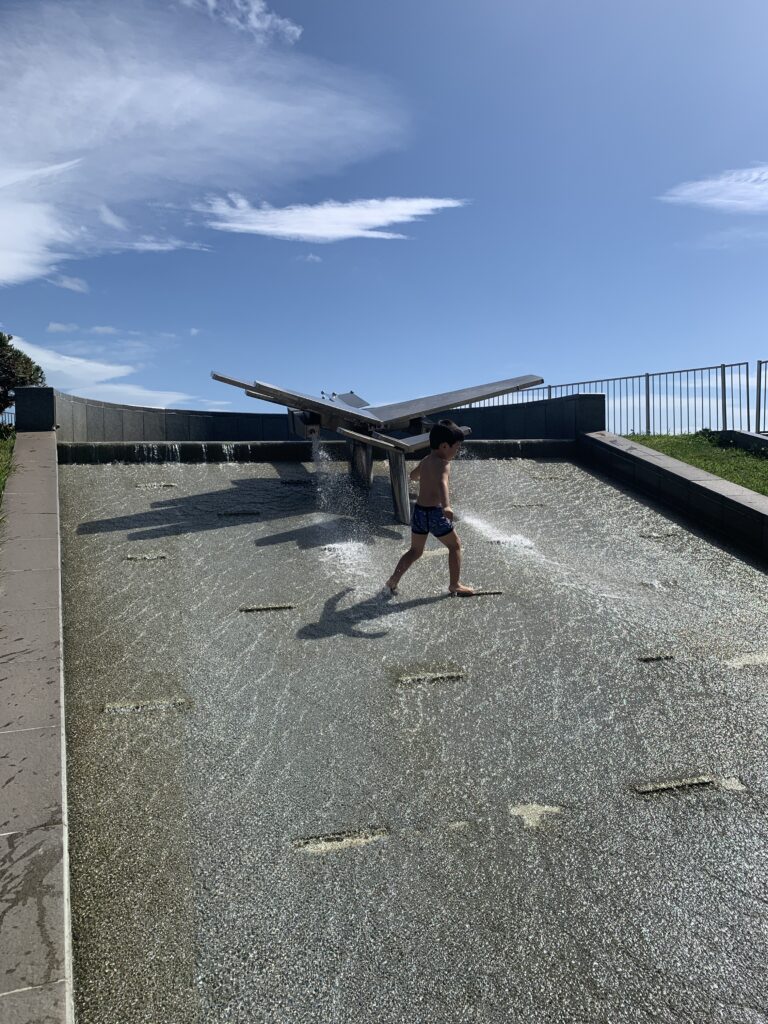 飛行機型の噴水がオススメです!滑走路型の水遊び場から少し傾斜がある上の方に、こちらの噴水が設置されており、夏になると水が流れてきます^ ^